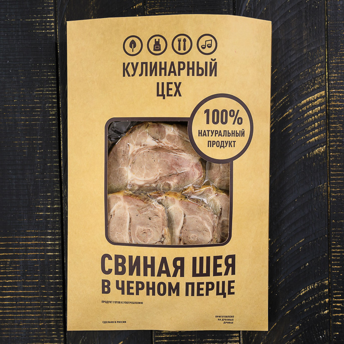 Состав: шея свиная, соль, перечная смесь дробленая, черный перец молотый, паприка молотая, паприка копченая, соевый соус, масло растительное