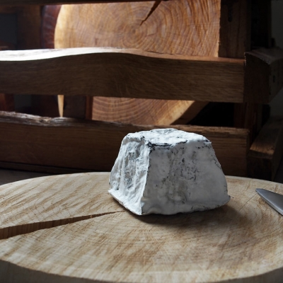 Французский козий сыр с белой плесенью, обсыпанный древесной золой.